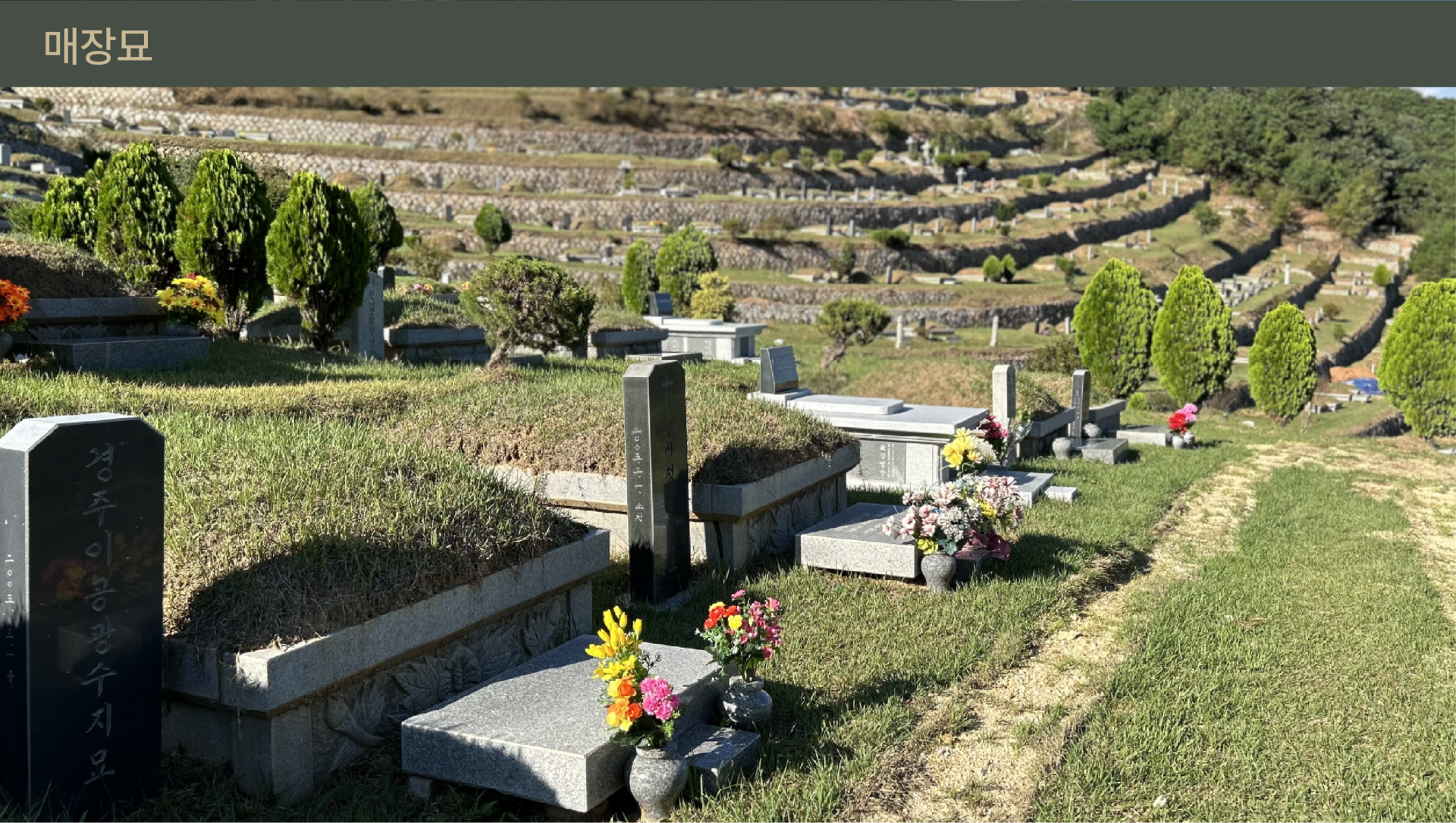 상담을 통해 개인, 부부 등 원하시는 묘역으로 고인을 모실 수 있습니다.